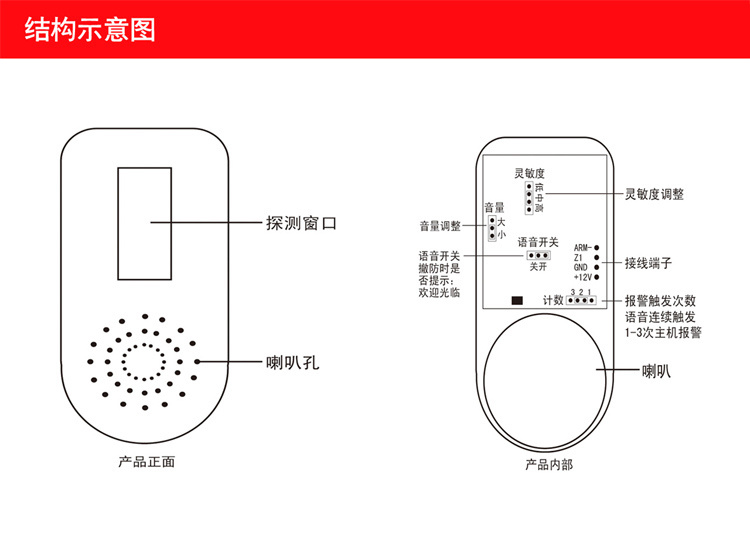 ◆ 店鋪門口安裝,雙語音設(shè)計(jì),布/撤防提示:布防/撤防成功